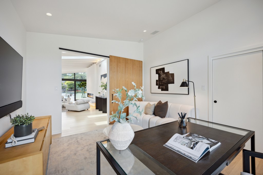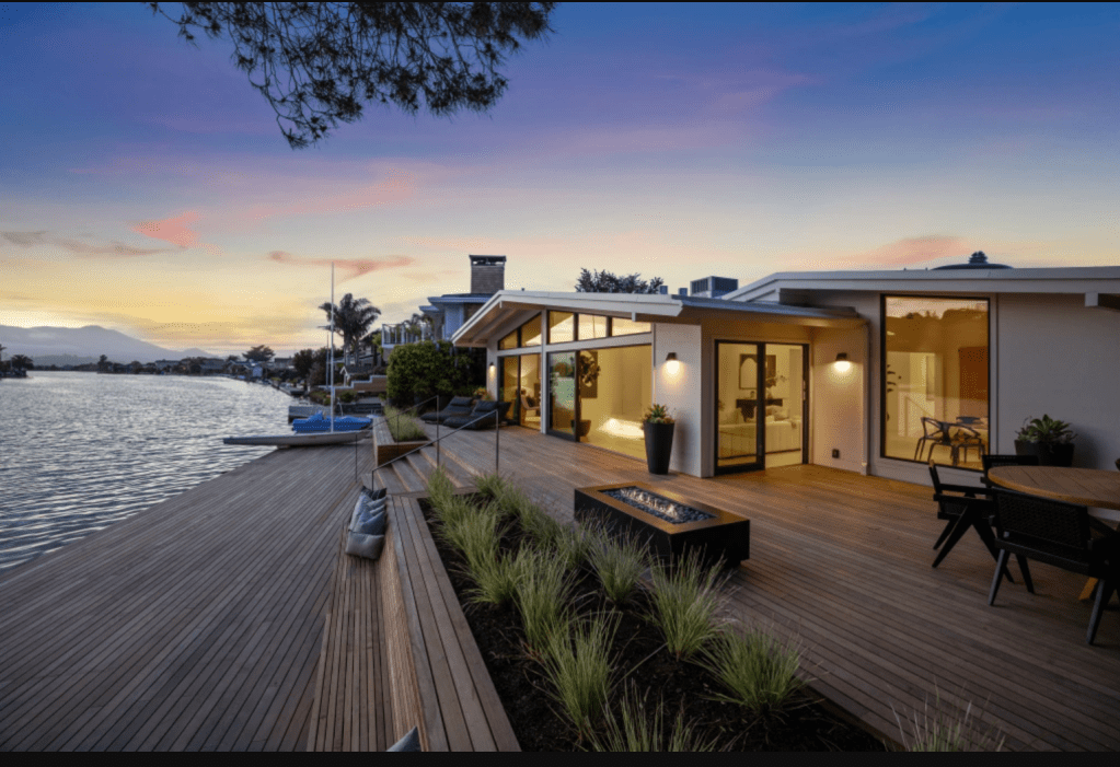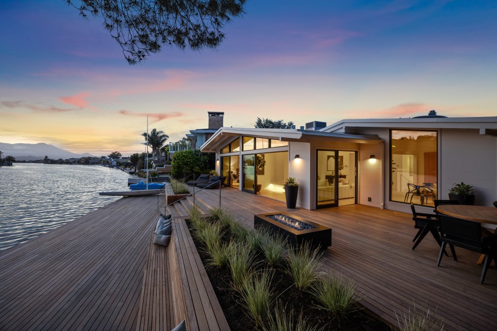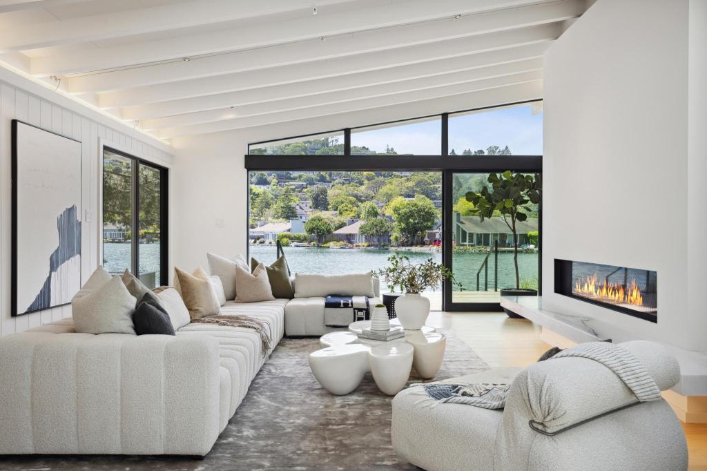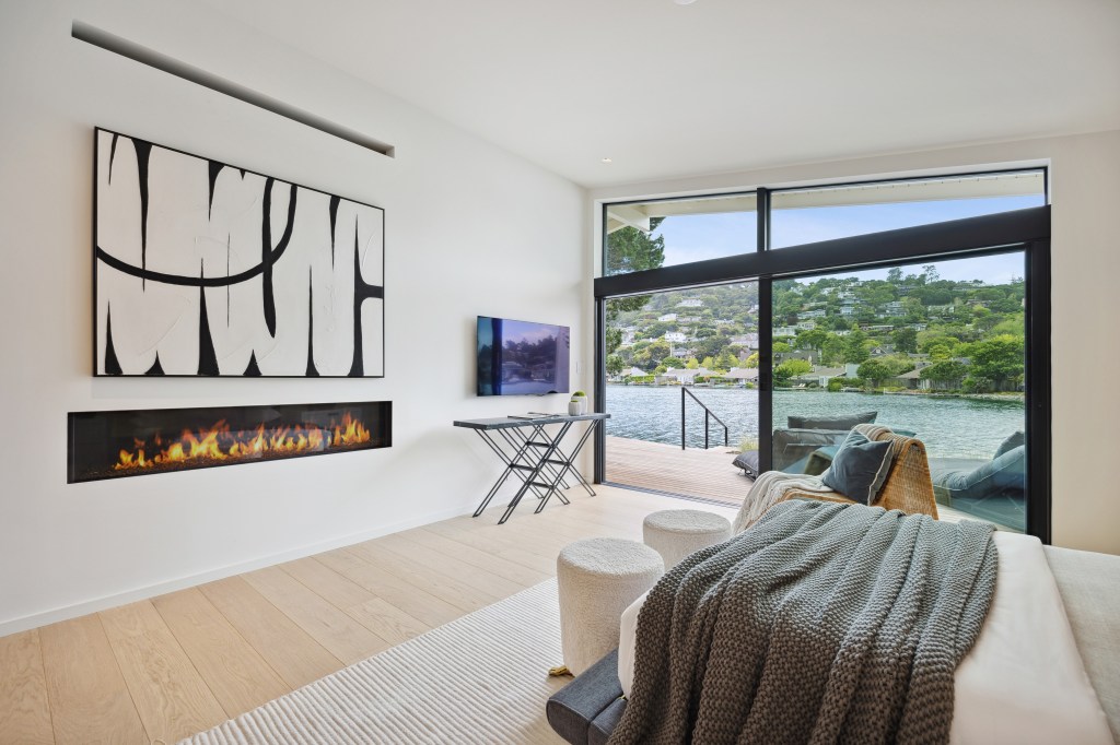 Light and water surround the home in a soft glow from sunrise to sunset. One can watch the Thursday night Lido races on the lagoon from evenings spent by the custom fire-pit, while the sun sets behind Mt. Tamalpais. Music emanates softly from the hidden speakers in the living room walls, reminding you of the serenity and peace that only waterfront living affords.