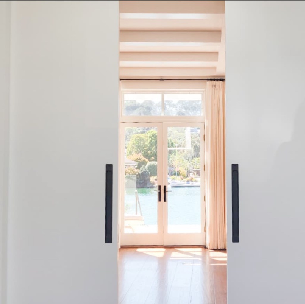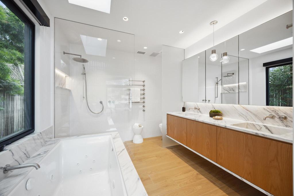 The master suite has views of the city with a spa-like en-suite bathroom and french casement windows overlooking the lagoon, offering a tranquil retreat for our client from the hustle and bustle of daily life.