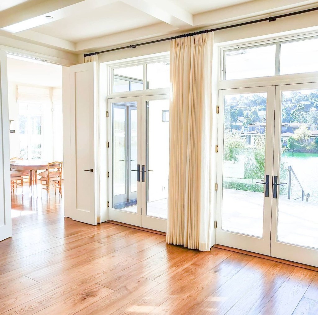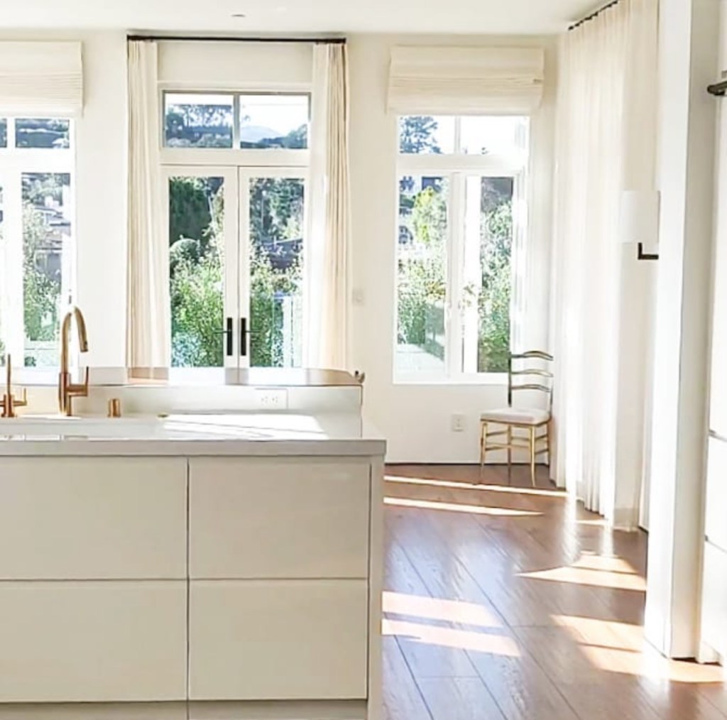 The interiors are bathed in natural light, courtesy of expansive and tall Loewen windows from Glass Concepts in San Rafael that frame panoramic views of the surrounding landscape, blurring the lines between indoor and outdoor living.