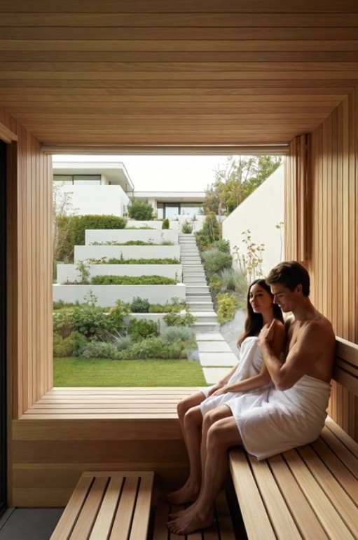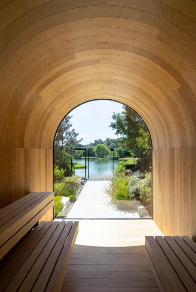 - Design water rituals — entry fountains, outdoor showers, or bathing spaces — as part of daily renewal.